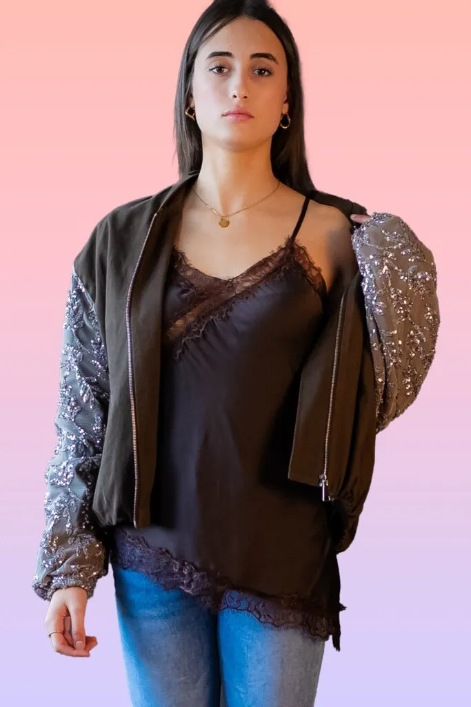 BOMBER GABARDINA MANICA PAILLETTES+SPIL