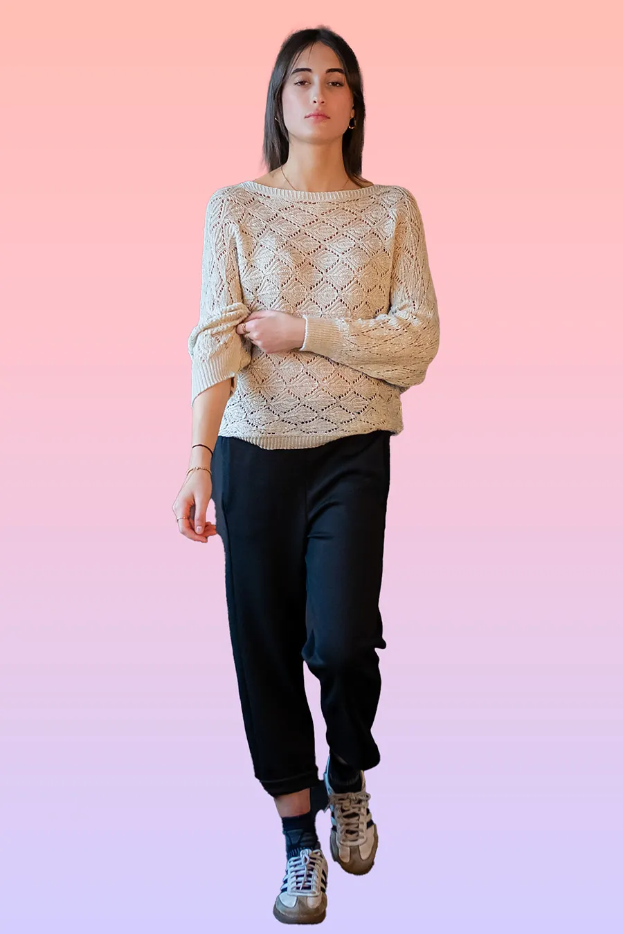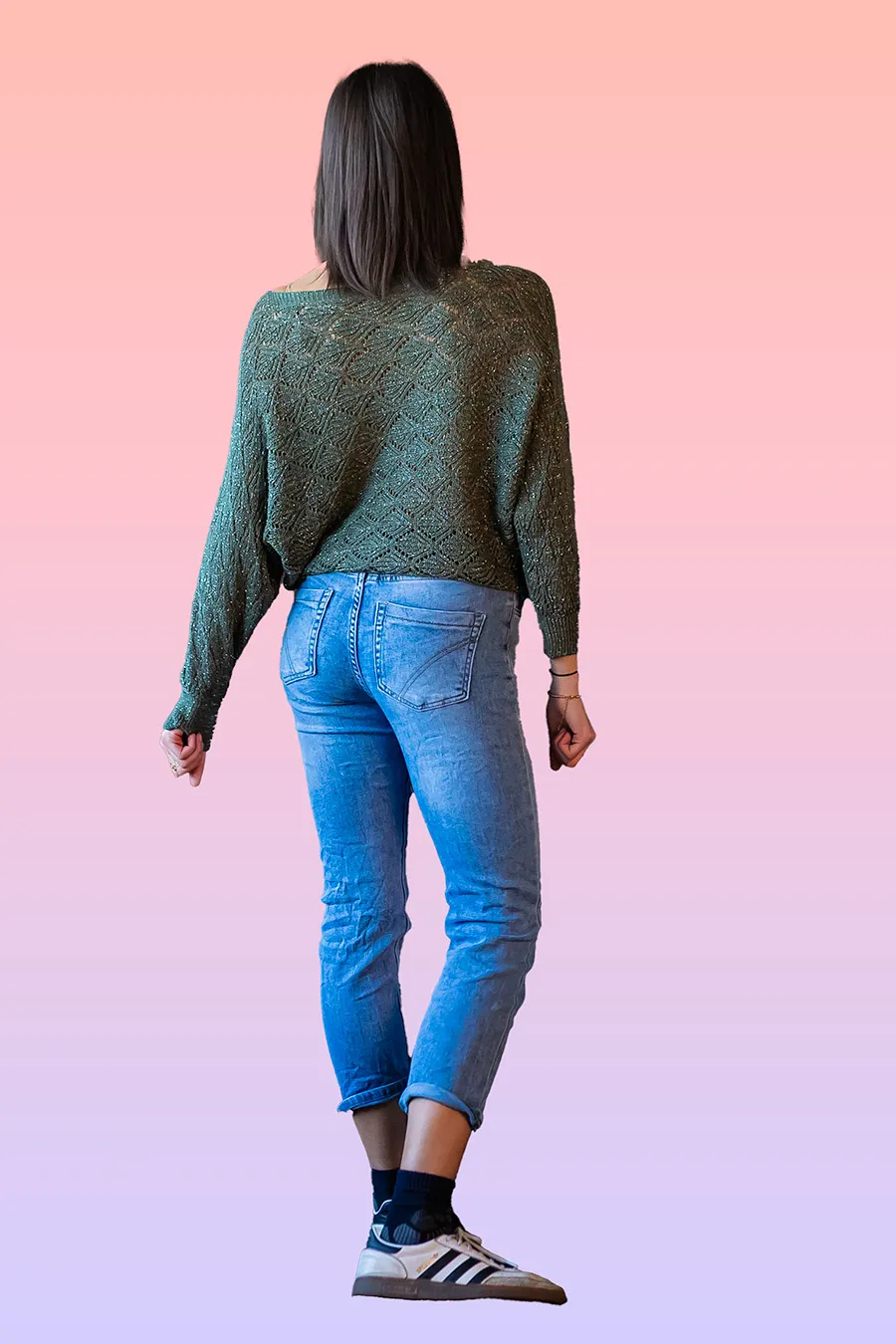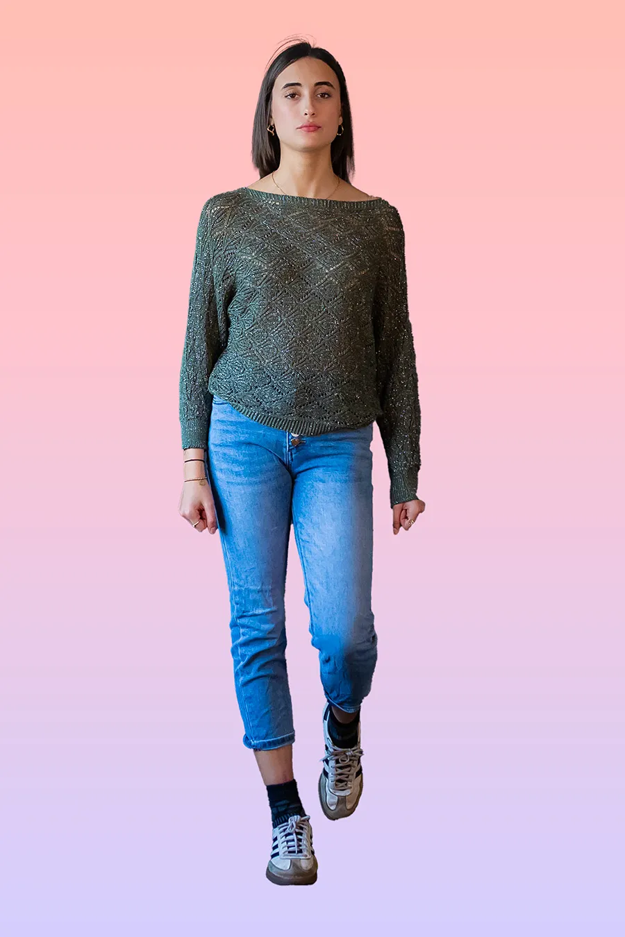Maglia a Maniche Pipistrello con Finitura Brillantinosa e Dettagli Forati: Eleganza e Stile Unico