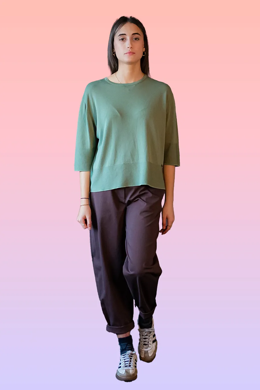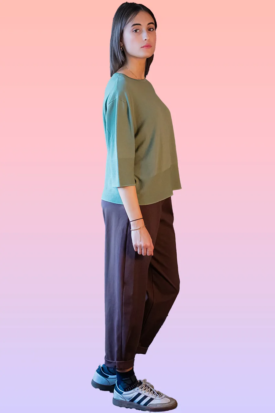 Porta un tocco di freschezza e originalità nel tuo guardaroba con la nostra maglia a maniche tre quarti. Questo capo versatile è pensato per le donne che amano esprimere il proprio stile con eleganza.