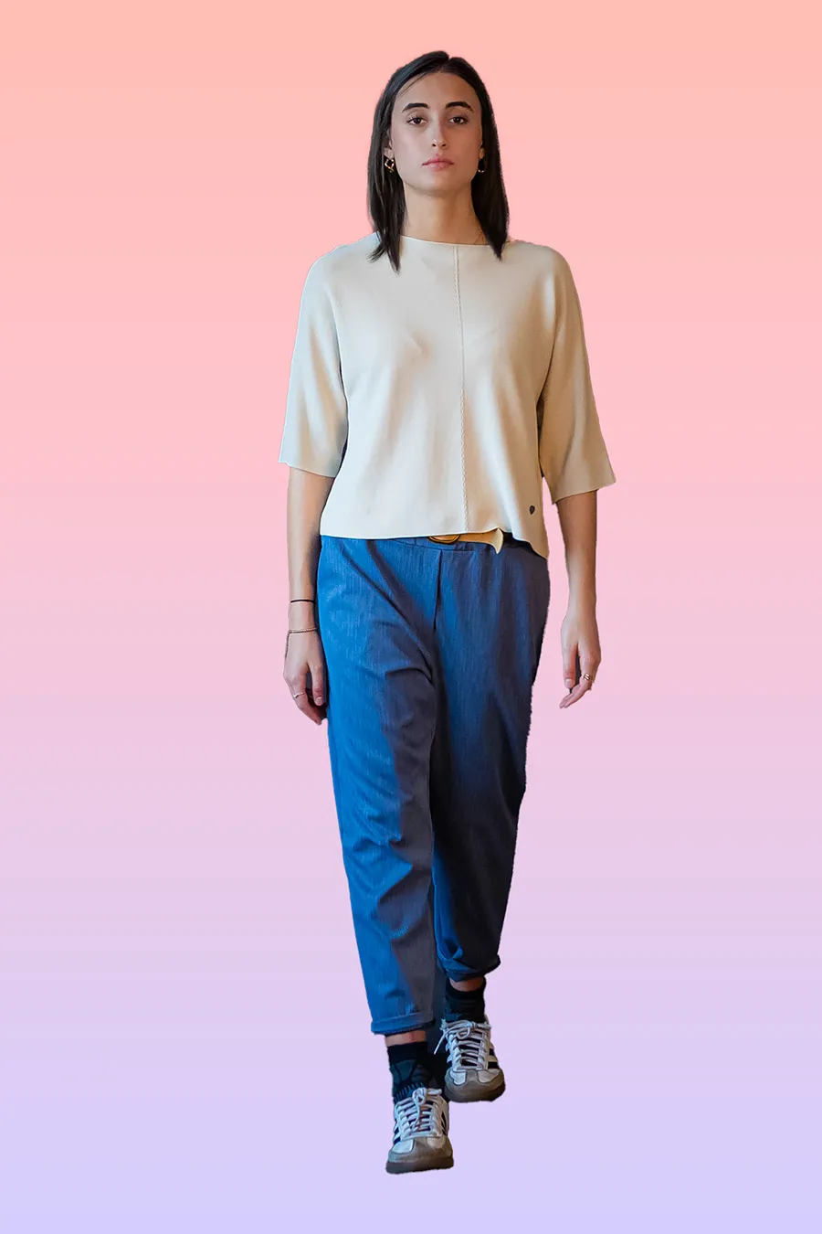 - Maniche Tre Quarti: Le maniche a tre quarti offrono un perfetto equilibrio tra copertura e freschezza, rendendo questo capo ideale per le transizioni stagionali. Puoi abbinarla a un blazer per un look professionale o indossarla da sola per un outfit più casual.